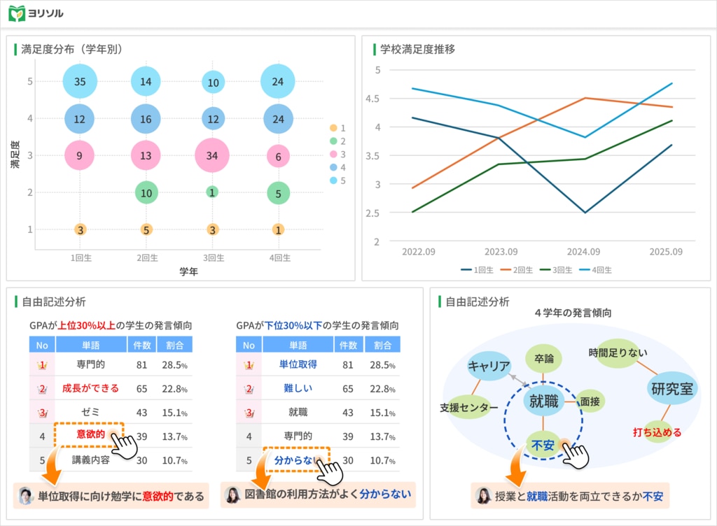 「ヨリソル」は、データ活用を通じて、学生の学びと教員の指導、双方の質向上に貢献いたします。